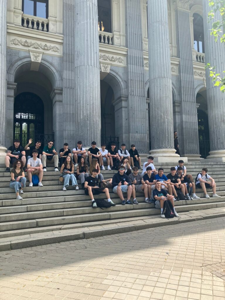 El pasado martes 1.° de Bachillerato de Ciencias Sociales viajó a Madrid para visitar la Bolsa y hacer una ruta por el Congreso, el Palacio Real, la Plaza de España, la Puerta del Sol y el Banco de España. Mientras tanto, el alumnado que cursa el Bachillerato de Artes realizó una visita guiada a la colección SOLO y al Museo Thyssen.