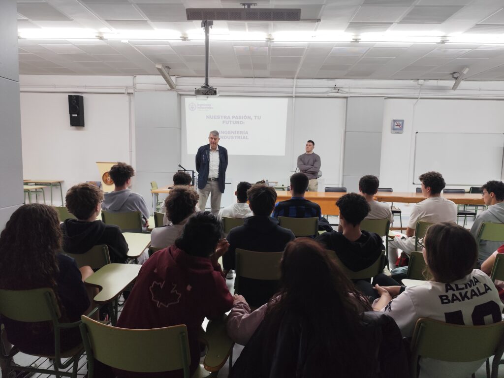 Ernesto Sancho, ingeniero industrial con amplia trayectoria en el sector de la automoción, y Óscar Marquina estudiante del Máster de Ingeniería Industrial, estuvieron ayer con nuestro alumnado del Bachillerato Científico Tecnológico para hablar sobre el pasado, el presente y el futuro de la ingeniería.