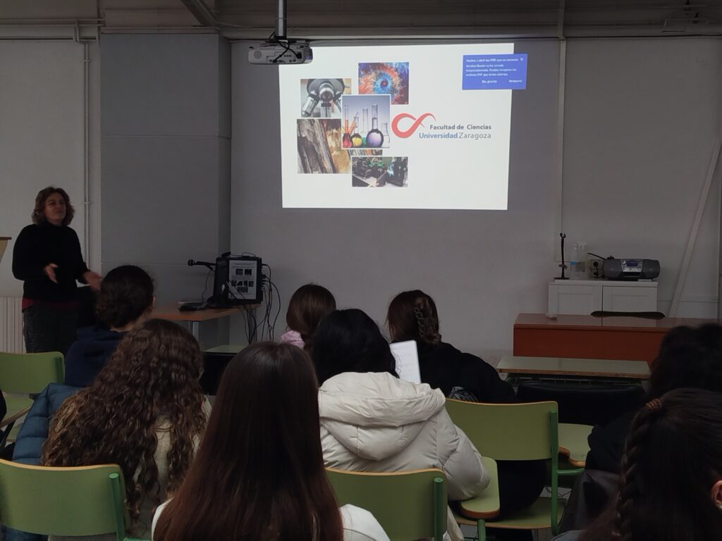 Carmen Sangüesa, profesora de Matemáticas de la Facultad de Ciencias, estuvo el viernes hablando con nuestro alumnado de Bachillerato sobre los grados ofertados por esta facultad.