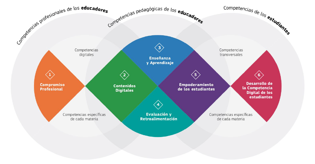 El Marco Común de Competencia Digital Docente se compone de 6 áreas competenciales: