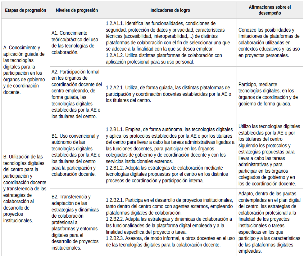 A modo de ejemplo, un cuadro de niveles competenciales e indicadores de logro de una de ellas queda así: