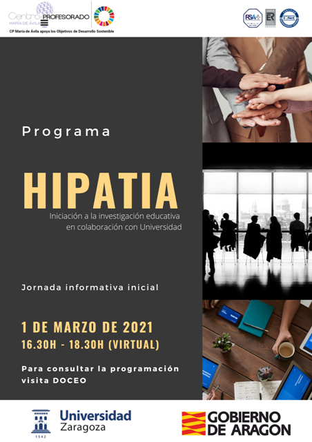 - 210222-Publicada en el BOA la RESOLUCIÓN de 10 de febrero de 2021, del Director General de Innovación y Formación Profesional, por la que se convoca el programa de formación «Hipatia» en colaboración con la Universidad de Zaragoza durante el curso escolar 2020-2021.
