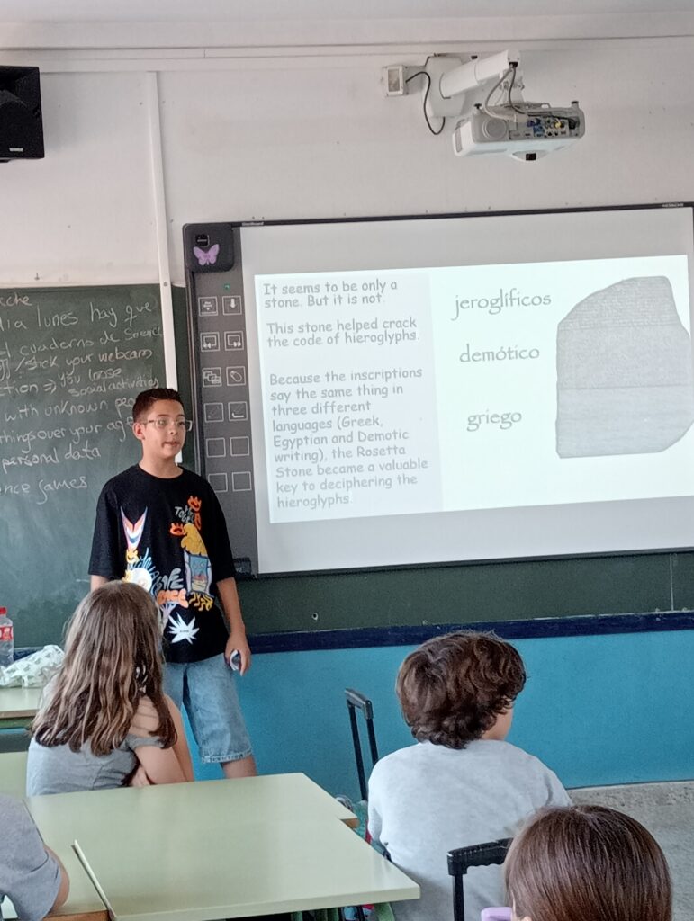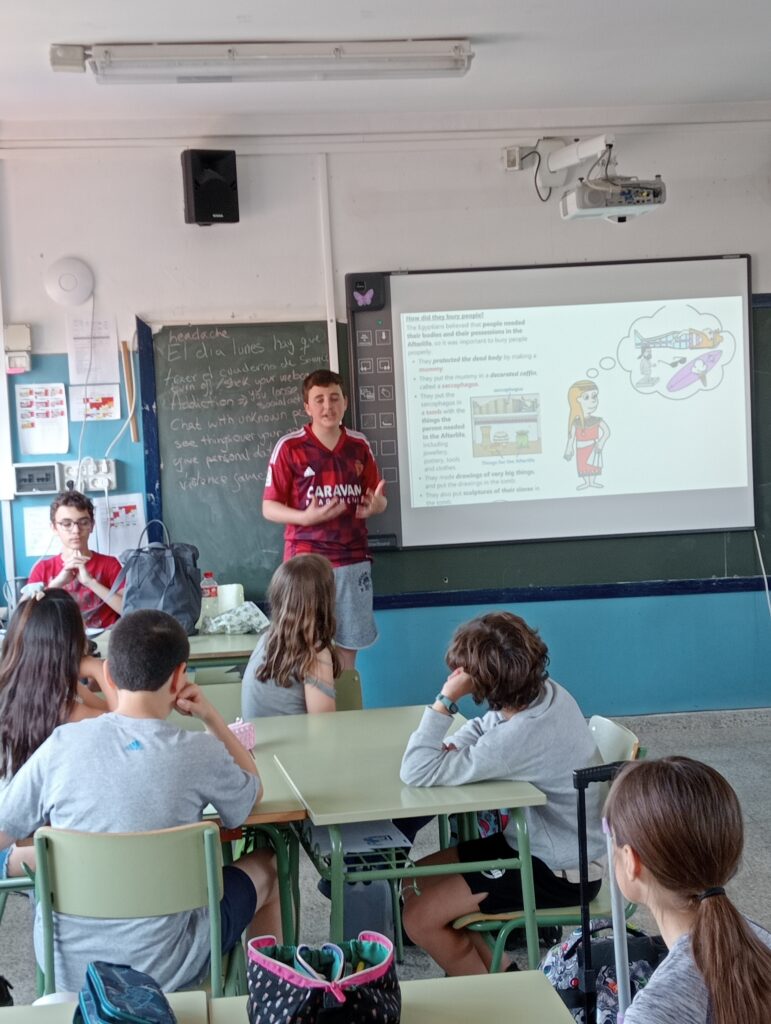 Nuestro alumnado BRIT de 1.º ESO ha dado una clase sobre Egipto a 5.º Primaria del CEIP Jerónimo Blancas. Lo han hecho genial.