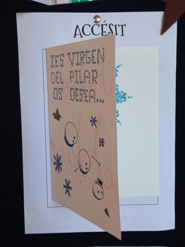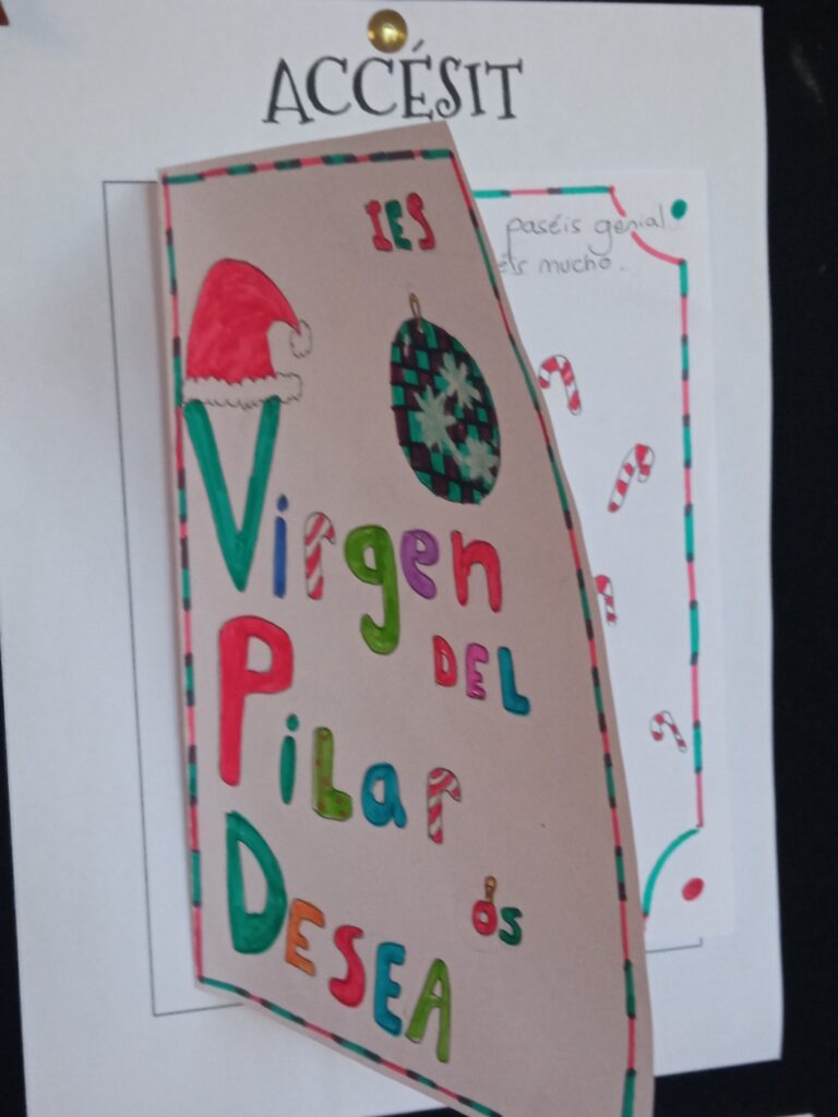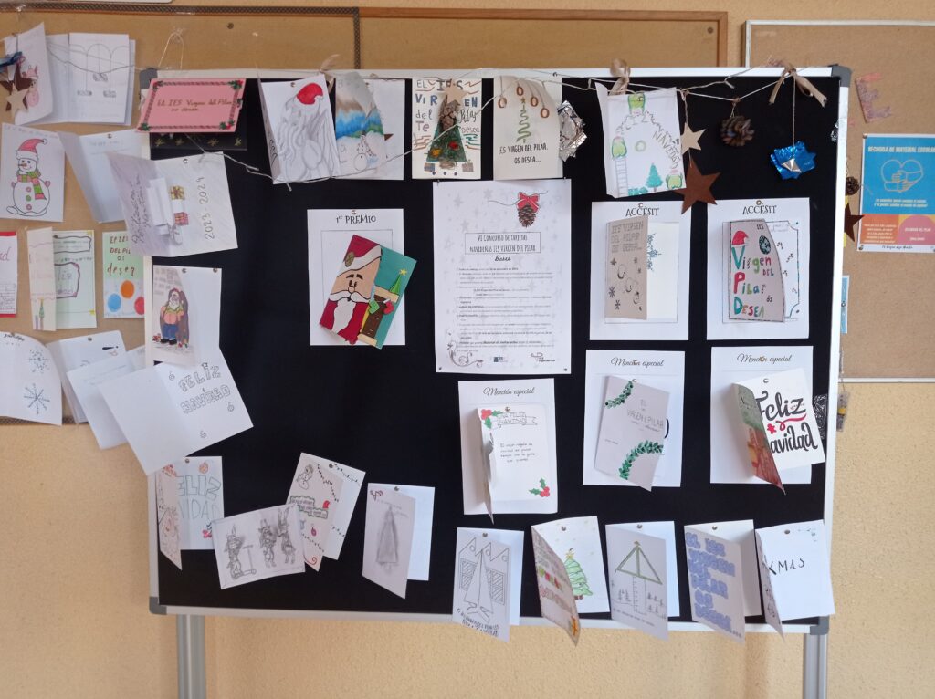 El VI Concurso de Tarjetas Navideñas ha sido un éxito de participación. El primer premio ha sido para Elisa Burillo (B2ART1) y los accésits para Sabrina Royo (B2ART1) y Marta Murillo (1.º B).