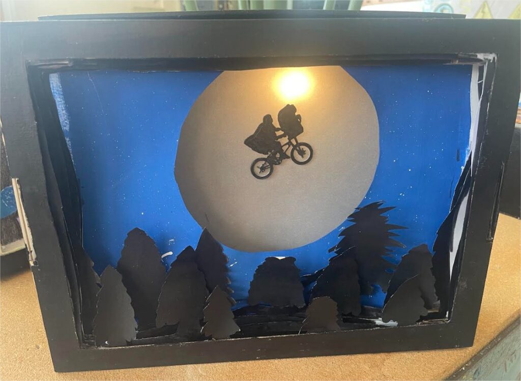 Los departamentos de Artes Plásticas y Tecnología han realizado este trimestre varios proyectos interdisciplinares con el alumnado de 2.º A y 2.º C trabajando la electricidad y la luz. Se han realizado cajas de luz con escenas de cine.