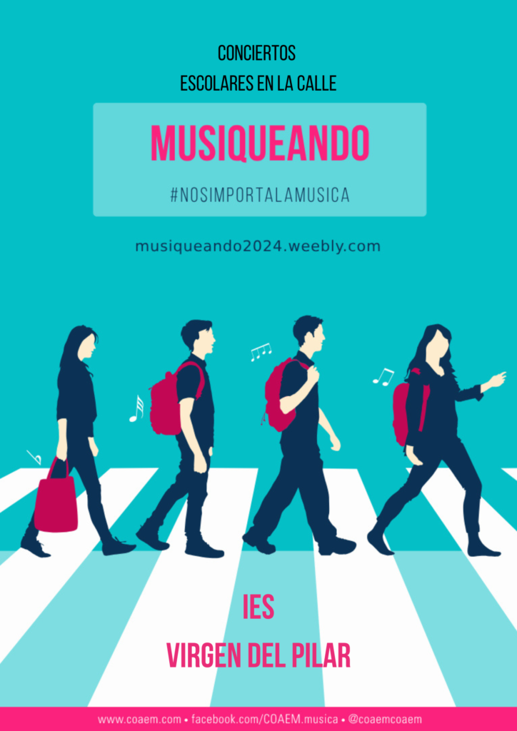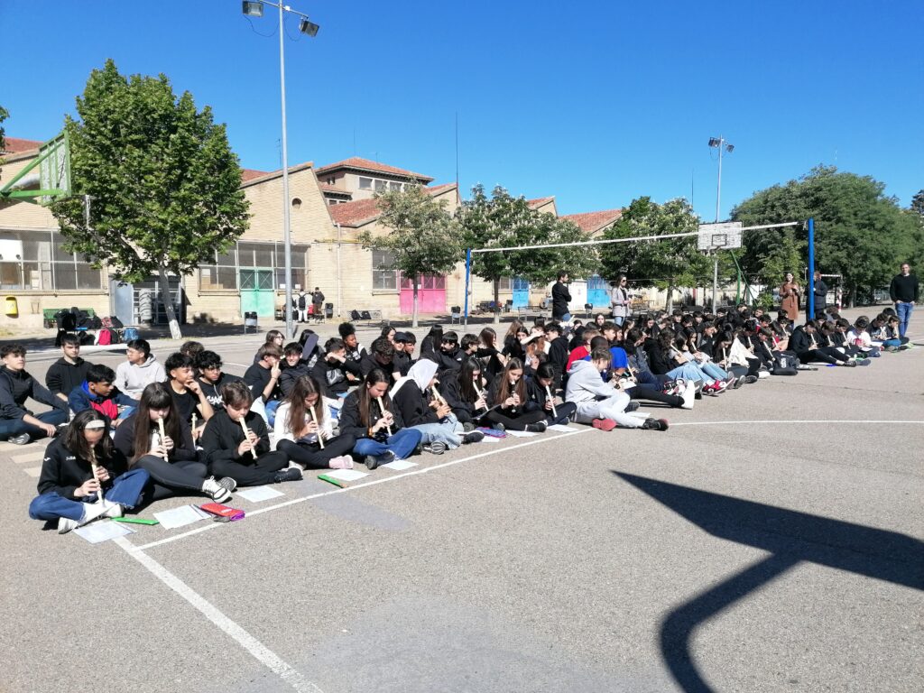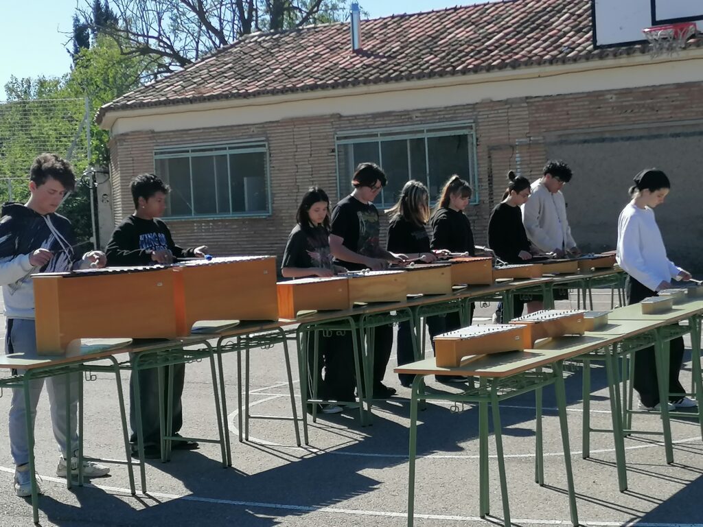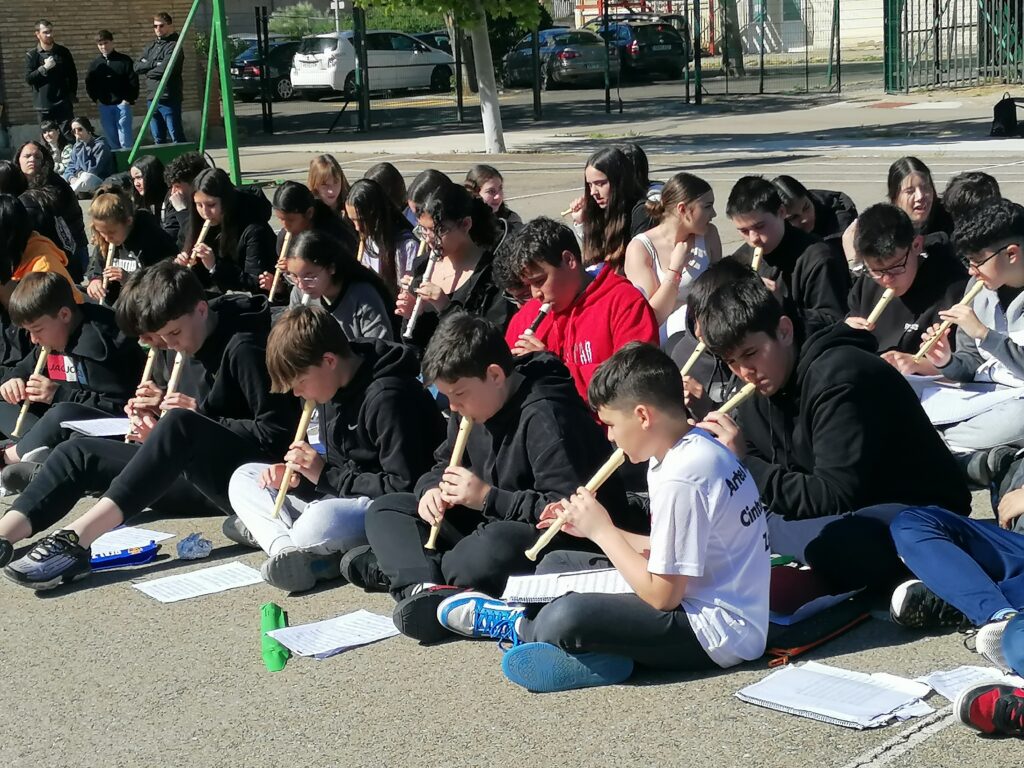 El departamento de Música organizó el 2 de mayo la actividad MUSIQUEANDO. Desde hace nueve años se pretende visibilizar la educación musical para que la sociedad sea consciente de lo enriquecedora que es en la educación general de nuestros jóvenes. El alumnado de 1.º ESO, 3.º ESO, 4.º ESO (que cursa Música) y el 1.º Bachillerato de Artes Escénicas hizo sonar sus canciones en el patio.