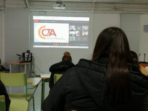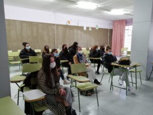 Las dos vicedecanas de la Facultad de Veterinaria de Zaragoza dieron una charla el pasado martes a parte de nuestro alumnado de Ciencias de 1.º y 2.º Bachillerato. En la misma ofrecieron información completa de los Grados de Veterinaria y Ciencia y Tecnología de los Alimentos. Se habló del acceso, el número de créditos, materias, salidas profesionales al acabar… La actividad fue amena e interesante para el alumnado que quiere cursar algunos de estudios y también para el que todavía no lo ha decidido, pero que pudo tener un conocimiento más claro de alguna de las carreras.
