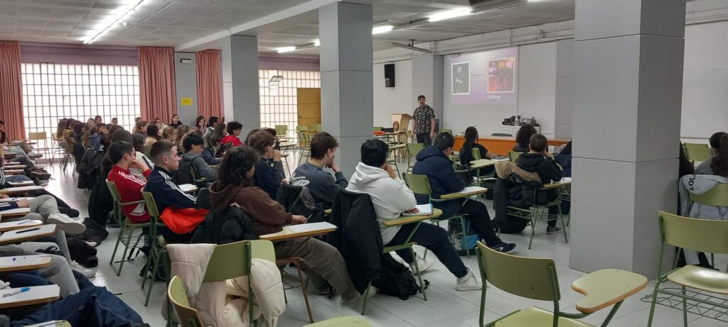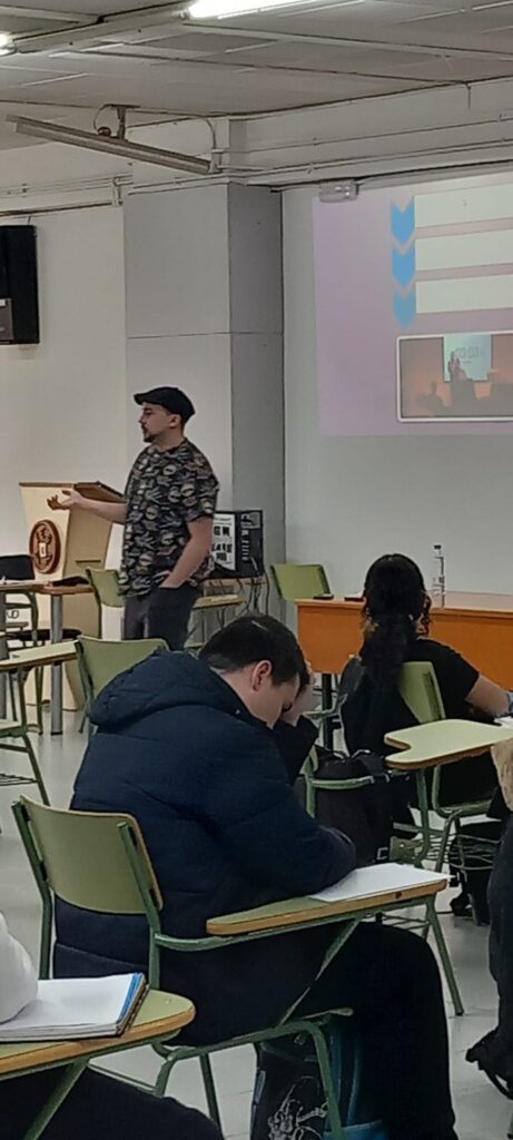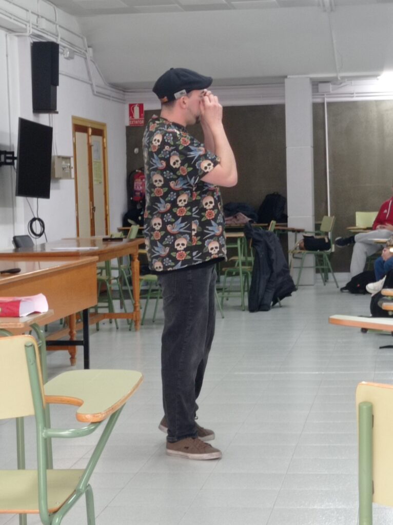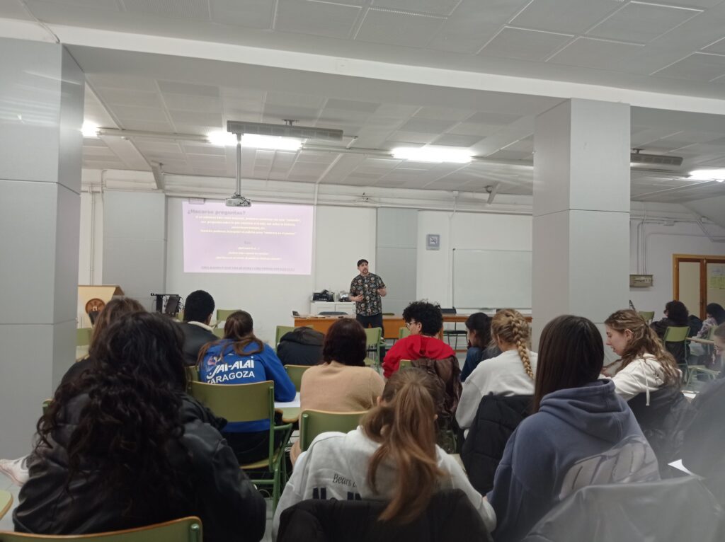 El viernes, 14 de marzo, el alumnado que cursa Oratoria y Escritura (4.º ESO) y Oratoria (1.º Bachillerato) tuvo la oportunidad de participar en un taller de slam con D. Etéreo, ganador, por ejemplo, del Altercado Slam de Zaragoza de 2023.
