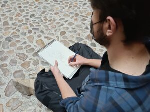 Los chicos tomaron apuntes dibujísticos y descubrieron la famosa Torre Nueva de la Plaza San Felipe. Acabaron la mañana visitando los murales que constituyen el paisaje urbano de la ciudad de Zaragoza, en la zona de las armas y el casco antiguo, pertenecientes a iniciativas como “Festival Asalto” o “Esto no es un solar»; iniciativas ciudadanas que promueven el arte y la cultura.